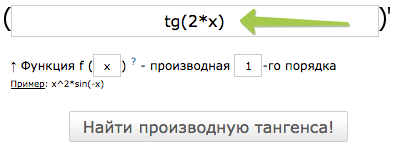 Например, если надо найти производную тангенса от двух x: tg(2x) .