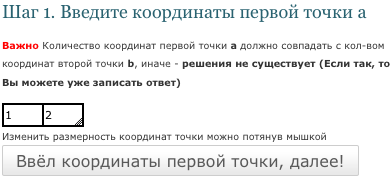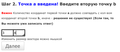 3. На втором шаге вы увидите форму для ввода второй точки B, введите её координаты, как рис. ниже: