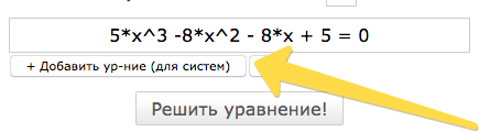 Третьим примером будет более сложный - возвратное кубическое уравнение онлайн.