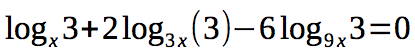 log(3)/log(x) + 2 log(3)/log(3x) - 6 log(3)/log(9x) = 0