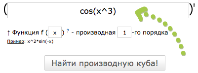 Например, если надо найти производную от косинуса x в кубе: cos(x3).