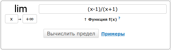 Например, предел функции (x-1)/(x+1) при x -> +oo (икс стремится к плюс бесконечности)
