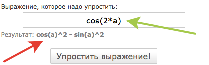 Косинус двойного угла cos(2*a) = (cos(a)^2-sin(a)^2)
