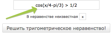 Рассмотрим пример решения тригонометрического неравенства онлайн на сайте Контрольная Работа РУ.