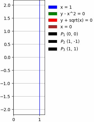 $$\,\,\iint\limits_{\textcolor{lime}{\mathbf{\mathbb{D}}}:\,x = 1,\,y = x^{2},\,y = - \sqrt{x}}\,1\,dx\,dy$$