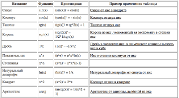 Вы также можете воспользоваться таблицей производных, чтобы самостоятельно вычислить любую производную, перейти: