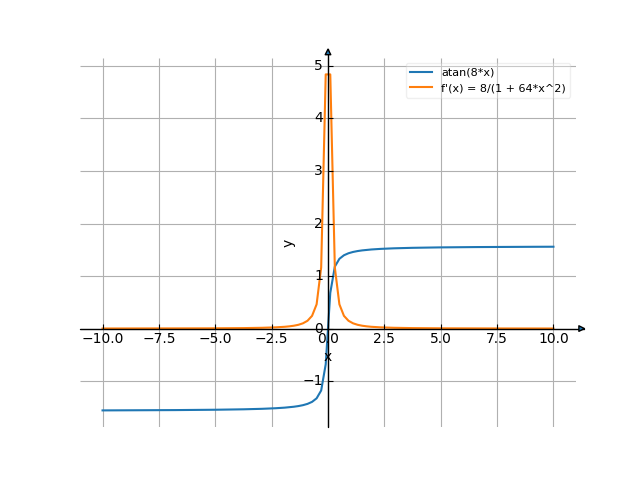 \1 + 64*x / ![Найти производную y' = f'(x) = atan(8*x) (арктангенс от (8 умножить на х)) - функции. Найдём значение производной функции в точке. [Есть ответ!] Производная atan(8*x) /media/krcore-image-pods/hash/derivative/e/71/fbfe1a0b43325c28ded16ea6ffd3e.png](/media/krcore-image-pods/hash/derivative/e/71/fbfe1a0b43325c28ded16ea6ffd3e.png)