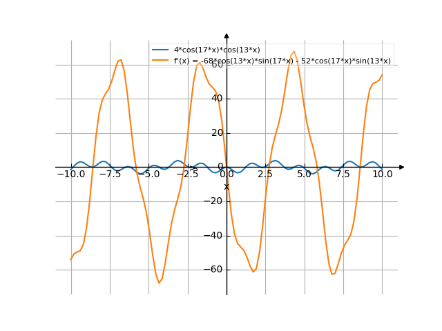![Найти производную y' = f'(x) = (4*cos(17*x)*cos(13*x)) ((4 умножить на косинус от (17 умножить на х) умножить на косинус от (13 умножить на х))) - функции. Найдём значение производной функции в точке. [Есть ответ!] Производная (4*cos(17*x)*cos(13*x)) /media/krcore-image-pods/hash/derivative/7/6c/7b4169e0846d70e3737e5323f8937.png](/media/krcore-image-pods/hash/derivative/7/6c/7b4169e0846d70e3737e5323f8937.png)