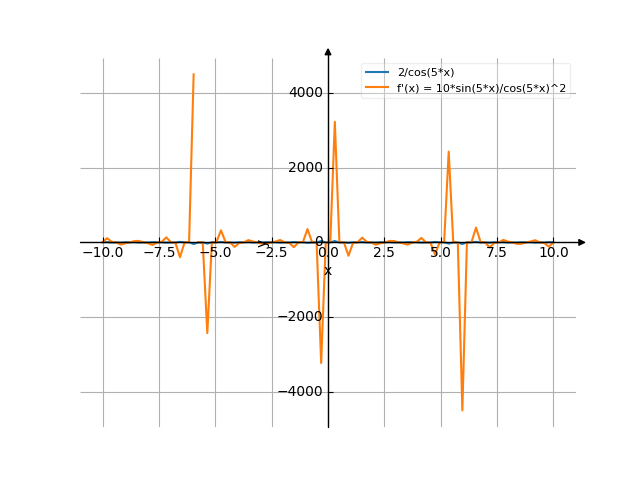 cos (5*x) ![Найти производную y' = f'(x) = 2/cos(5*x) (2 делить на косинус от (5 умножить на х)) - функции. Найдём значение производной функции в точке. [Есть ответ!] Производная 2/cos(5*x) /media/krcore-image-pods/hash/derivative/4/3a/c18c63f5724d6d55e5ce8592347aa.png](/media/krcore-image-pods/hash/derivative/4/3a/c18c63f5724d6d55e5ce8592347aa.png)