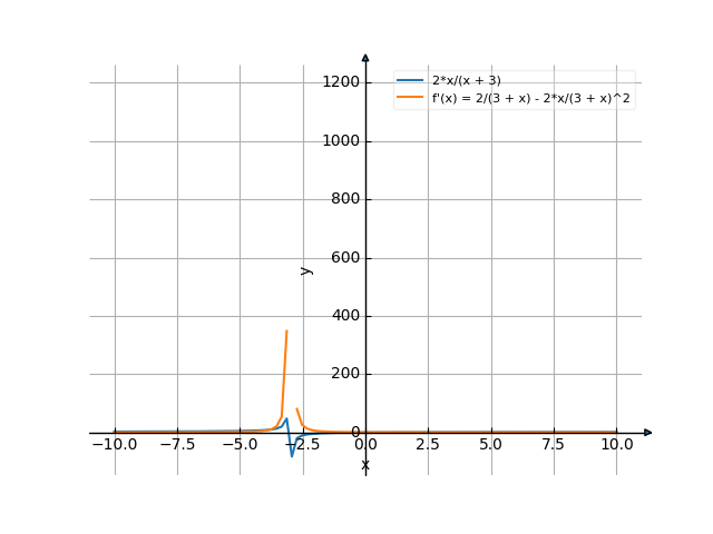 (3 + x) ![Найти производную y' = f'(x) = 2*x/(x+3) (2 умножить на х делить на (х плюс 3)) - функции. Найдём значение производной функции в точке. [Есть ответ!] Производная 2*x/(x+3) /media/krcore-image-pods/hash/derivative/8/30/7a892ca216f20f364cfa100c6d157.png](/media/krcore-image-pods/hash/derivative/8/30/7a892ca216f20f364cfa100c6d157.png)