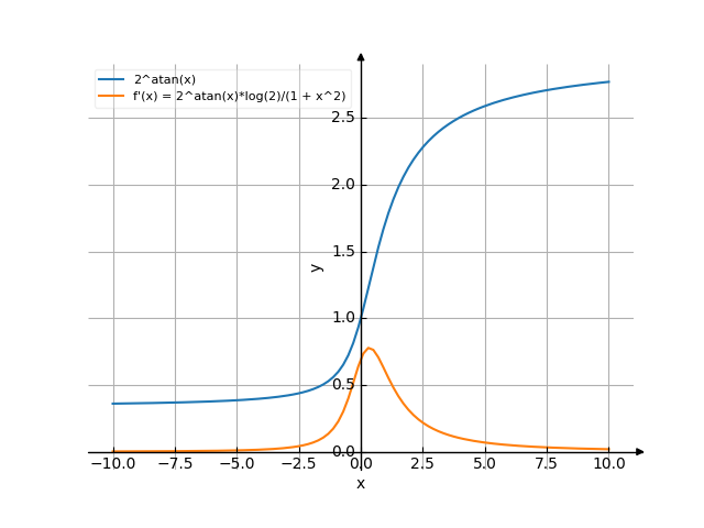 1 + x $$\frac{2^{\operatorname{atan}{\left(x \right)}} \log{\left(2 \right)}}{x^{2} + 1}$$