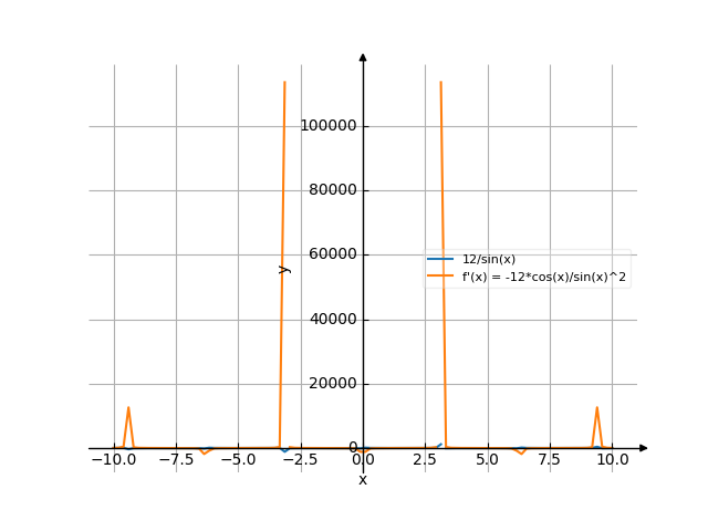 sin (x) ![Найти производную y' = f'(x) = 12/(sin(x)) (12 делить на (синус от (х))) - функции. Найдём значение производной функции в точке. [Есть ответ!] Производная 12/(sin(x)) /media/krcore-image-pods/hash/derivative/7/76/db8ad404a3658d52f37bd0f34f076.png](/media/krcore-image-pods/hash/derivative/7/76/db8ad404a3658d52f37bd0f34f076.png)