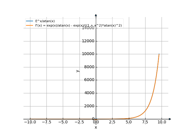 atan(x) $$\frac{\left(\frac{2 \left(x + \frac{1}{\operatorname{atan}{\left(x \right)}}\right)}{\left(x^{2} + 1\right)^{2} \operatorname{atan}{\left(x \right)}} + 1 - \frac{2}{\left(x^{2} + 1\right) \operatorname{atan}{\left(x \right)}}\right) e^{x}}{\operatorname{atan}{\left(x \right)}}$$