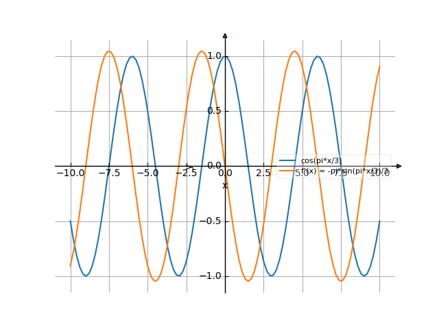 27 ![Найти производную y' = f'(x) = cos(pi*x/3) (косинус от (число пи умножить на х делить на 3)) - функции. Найдём значение производной функции в точке. [Есть ответ!] Производная cos(pi*x/3) /media/krcore-image-pods/hash/derivative/a/ba/d5713038bc92c49b7cbc5bad2c509.png](/media/krcore-image-pods/hash/derivative/a/ba/d5713038bc92c49b7cbc5bad2c509.png)