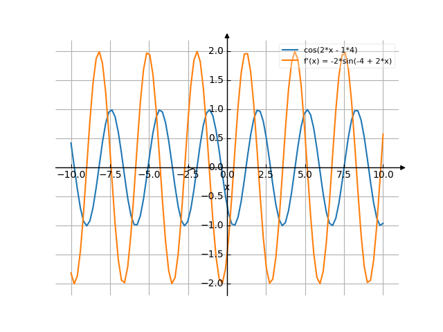 ![Найти производную y' = f'(x) = cos(2*x-4) (косинус от (2 умножить на х минус 4)) - функции. Найдём значение производной функции в точке. [Есть ответ!] Производная cos(2*x-4) /media/krcore-image-pods/hash/derivative/3/b4/cb6c4f6ec4de102bbb81fdec6b57d.png](/media/krcore-image-pods/hash/derivative/3/b4/cb6c4f6ec4de102bbb81fdec6b57d.png)