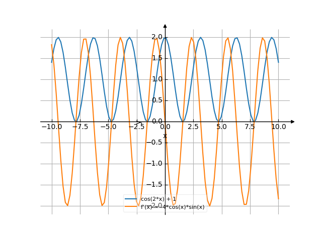 ![Найти производную y' = f'(x) = cos(2*x)+1 (косинус от (2 умножить на х) плюс 1) - функции. Найдём значение производной функции в точке. [Есть ответ!] Производная cos(2*x)+1 /media/krcore-image-pods/hash/derivative/4/46/e261748de8b2a3410f0551d72c242.png](/media/krcore-image-pods/hash/derivative/4/46/e261748de8b2a3410f0551d72c242.png)