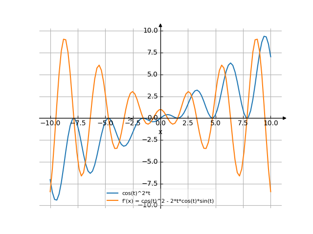 ![Найти производную y' = f'(x) = (cos(t)^2)*t ((косинус от (t) в квадрате) умножить на t) - функции. Найдём значение производной функции в точке. [Есть ответ!] Производная (cos(t)^2)*t /media/krcore-image-pods/hash/derivative/3/55/235a6754041b868fac390dea4c2a2.png](/media/krcore-image-pods/hash/derivative/3/55/235a6754041b868fac390dea4c2a2.png)