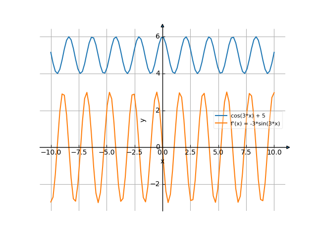 ![Найти производную y' = f'(x) = cos(3*x)+5 (косинус от (3 умножить на х) плюс 5) - функции. Найдём значение производной функции в точке. [Есть ответ!] Производная cos(3*x)+5 /media/krcore-image-pods/hash/derivative/6/f0/c91ac2c2da9d659c38b15e907fe15.png](/media/krcore-image-pods/hash/derivative/6/f0/c91ac2c2da9d659c38b15e907fe15.png)
