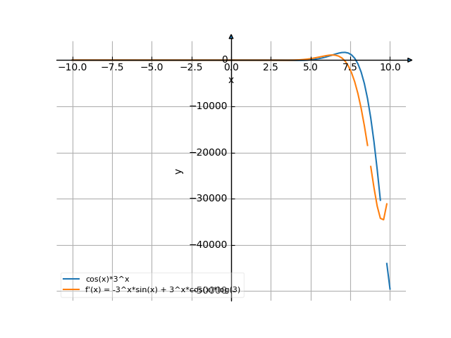 $$- 3^{x} \sin{\left(x \right)} + 3^{x} \log{\left(3 \right)} \cos{\left(x \right)}$$