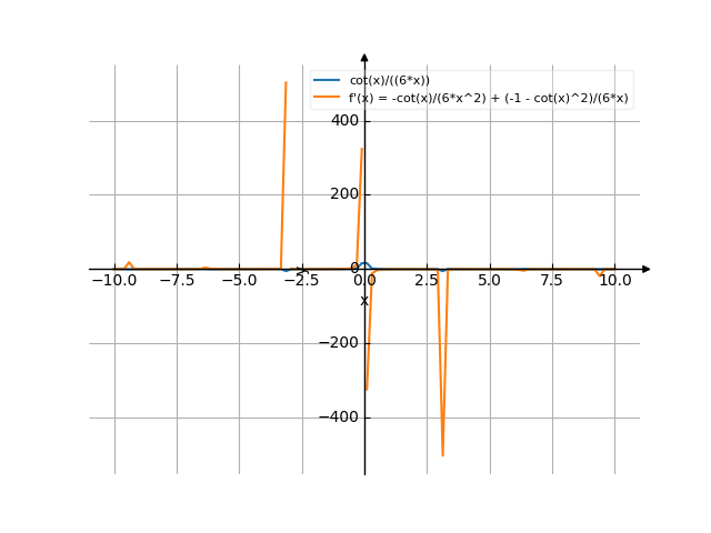 x ![Найти производную y' = f'(x) = cot(x)/(6*x) (котангенс от (х) делить на (6 умножить на х)) - функции. Найдём значение производной функции в точке. [Есть ответ!] Производная cot(x)/(6*x) /media/krcore-image-pods/hash/derivative/a/01/d8d54f6a15c615216bf6598393259.png](/media/krcore-image-pods/hash/derivative/a/01/d8d54f6a15c615216bf6598393259.png)