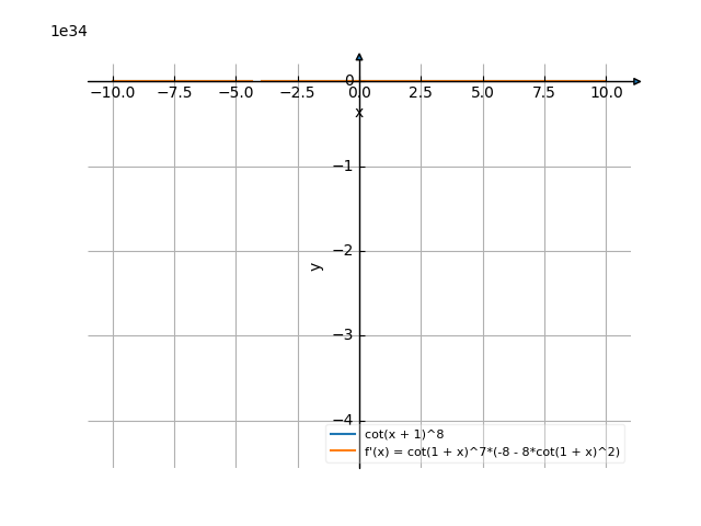 -16*cot (1 + x)*\1 + cot (1 + x)/*\2*cot (1 + x) + 21*\1 + cot (1 + x)/ + 22*cot (1 + x)*\1 + cot (1 + x)//![Найти производную y' = f'(x) = cot(x+1)^(8) (котангенс от (х плюс 1) в степени (8)) - функции. Найдём значение производной функции в точке. [Есть ответ!] Производная cot(x+1)^(8) /media/krcore-image-pods/hash/derivative/e/e1/df7fadc309ed5affed49be4500c51.png](/media/krcore-image-pods/hash/derivative/e/e1/df7fadc309ed5affed49be4500c51.png)