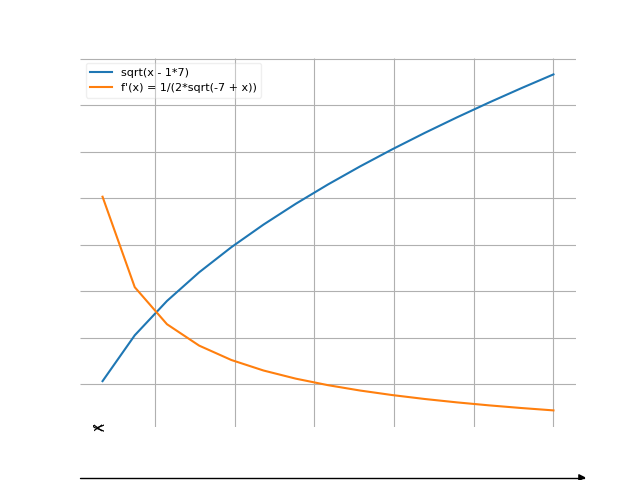 8*(-7 + x) ![Найти производную y' = f'(x) = sqrt(x-7) (квадратный корень из (х минус 7)) - функции. Найдём значение производной функции в точке. [Есть ответ!] Производная sqrt(x-7) /media/krcore-image-pods/hash/derivative/9/9b/272ddd8433caa6cd62705bfd17cd3.png](/media/krcore-image-pods/hash/derivative/9/9b/272ddd8433caa6cd62705bfd17cd3.png)