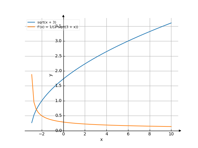 8*(3 + x) ![Найти производную y' = f'(x) = sqrt(x+3) (квадратный корень из (х плюс 3)) - функции. Найдём значение производной функции в точке. [Есть ответ!] Производная sqrt(x+3) /media/krcore-image-pods/hash/derivative/f/67/d90b219e52438e20c3f43f62e5fc3.png](/media/krcore-image-pods/hash/derivative/f/67/d90b219e52438e20c3f43f62e5fc3.png)