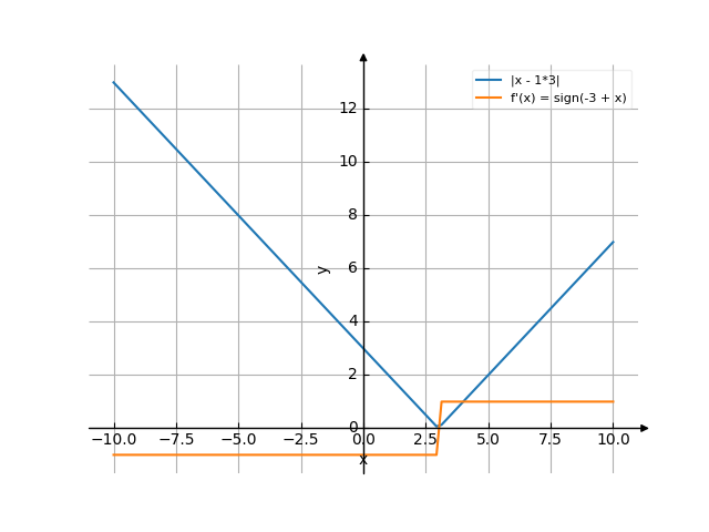 $$\operatorname{sign}{\left(x - 3 \right)}$$