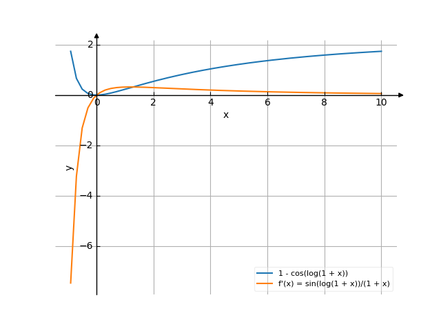 (1 + x) ![Найти производную y' = f'(x) = 1-cos(log(1+x)) (1 минус косинус от (логарифм от (1 плюс х))) - функции. Найдём значение производной функции в точке. [Есть ответ!] Производная 1-cos(log(1+x)) /media/krcore-image-pods/hash/derivative/3/73/78bb2daf40ad288899c70fe046c21.png](/media/krcore-image-pods/hash/derivative/3/73/78bb2daf40ad288899c70fe046c21.png)