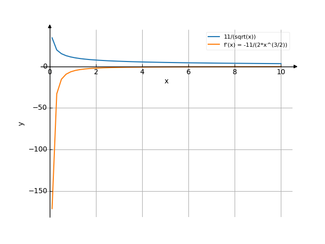 ![Найти производную y' = f'(x) = 11/sqrt(x) (11 делить на квадратный корень из (х)) - функции. Найдём значение производной функции в точке. [Есть ответ!] Производная 11/sqrt(x) /media/krcore-image-pods/hash/derivative/6/cd/b1c04279434e4072c3c65f423c6bf.png](/media/krcore-image-pods/hash/derivative/6/cd/b1c04279434e4072c3c65f423c6bf.png)