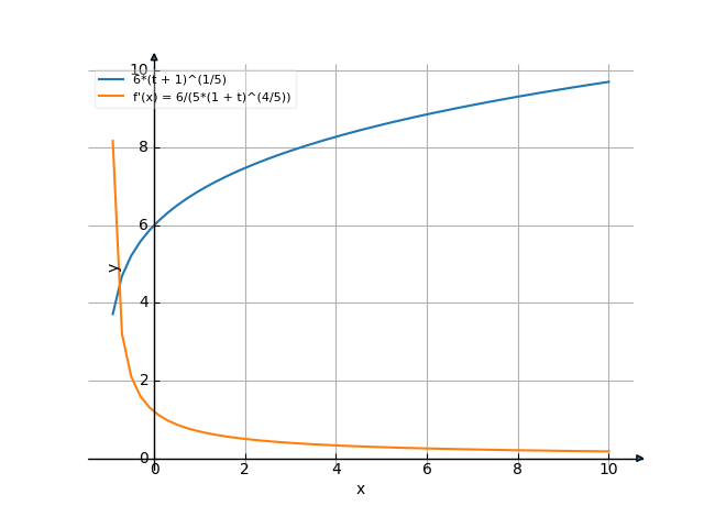 125*(1 + t) ![Найти производную y' = f'(x) = 6*(t+1)^(1/5) (6 умножить на (t плюс 1) в степени (1 делить на 5)) - функции. Найдём значение производной функции в точке. [Есть ответ!] Производная 6*(t+1)^(1/5) /media/krcore-image-pods/hash/derivative/f/d7/dfdfc6a8e0c1daef8f52511947290.png](/media/krcore-image-pods/hash/derivative/f/d7/dfdfc6a8e0c1daef8f52511947290.png)