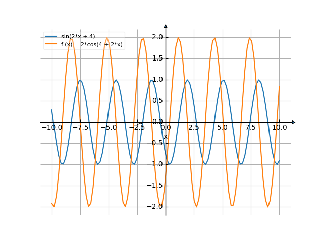 ![Найти производную y' = f'(x) = sin(2*x+4) (синус от (2 умножить на х плюс 4)) - функции. Найдём значение производной функции в точке. [Есть ответ!] Производная sin(2*x+4) /media/krcore-image-pods/hash/derivative/0/eb/9111f8414b3917482d95c74b0cdb6.png](/media/krcore-image-pods/hash/derivative/0/eb/9111f8414b3917482d95c74b0cdb6.png)