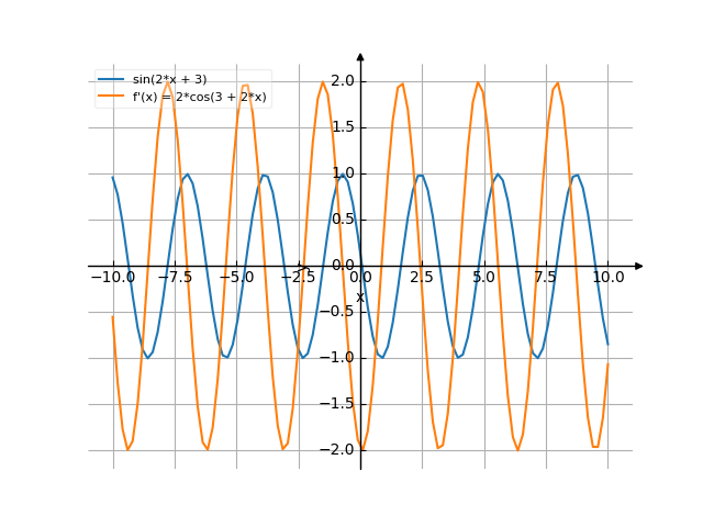 ![Найти производную y' = f'(x) = (sin(2*x+3)) ((синус от (2 умножить на х плюс 3))) - функции. Найдём значение производной функции в точке. [Есть ответ!] Производная (sin(2*x+3)) /media/krcore-image-pods/hash/derivative/2/fa/a6e6b97f46a913b68b0add645ff23.png](/media/krcore-image-pods/hash/derivative/2/fa/a6e6b97f46a913b68b0add645ff23.png)