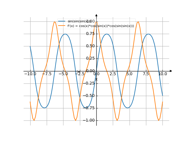 -\cos (x)*cos (sin(x))*sin(sin(sin(x))) + cos (x)*cos(sin(sin(x)))*sin(sin(x)) + cos(sin(x))*cos(sin(sin(x)))*sin(x)/