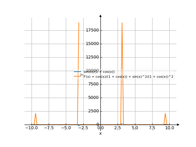 1 + cos(x) ![Найти производную y' = f'(x) = sin(x)/(1+cos(x)) (синус от (х) делить на (1 плюс косинус от (х))) - функции. Найдём значение производной функции в точке. [Есть ответ!] Производная sin(x)/(1+cos(x)) /media/krcore-image-pods/hash/derivative/a/85/fd393d4dbdc224ad70d5301b5bb9c.png](/media/krcore-image-pods/hash/derivative/a/85/fd393d4dbdc224ad70d5301b5bb9c.png)