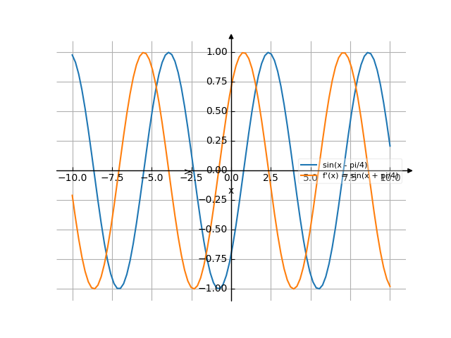 ![Найти производную y' = f'(x) = sin(x-pi/4) (синус от (х минус число пи делить на 4)) - функции. Найдём значение производной функции в точке. [Есть ответ!] Производная sin(x-pi/4) /media/krcore-image-pods/hash/derivative/0/bb/81c590407a38f69a9a267c0bab713.png](/media/krcore-image-pods/hash/derivative/0/bb/81c590407a38f69a9a267c0bab713.png)