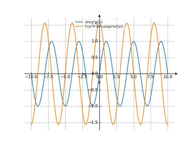 8 ![Найти производную y' = f'(x) = sin(x*pi/2) (синус от (х умножить на число пи делить на 2)) - функции. Найдём значение производной функции в точке. [Есть ответ!] Производная sin(x*pi/2) /media/krcore-image-pods/hash/derivative/8/01/c5b4b679c4b8a7bab99f85e735026.png](/media/krcore-image-pods/hash/derivative/8/01/c5b4b679c4b8a7bab99f85e735026.png)