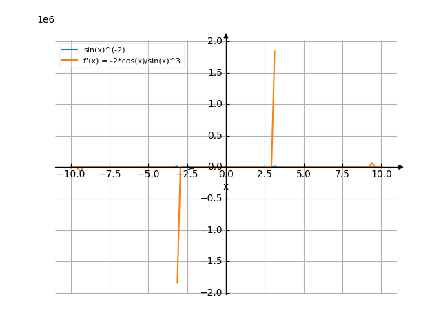 sin (x) ![Найти производную y' = f'(x) = sin(x)^-2 (синус от (х) в степени минус 2) - функции. Найдём значение производной функции в точке. [Есть ответ!] Производная sin(x)^-2 /media/krcore-image-pods/hash/derivative/a/22/a6ea07d1c7be137c46f9b3896a821.png](/media/krcore-image-pods/hash/derivative/a/22/a6ea07d1c7be137c46f9b3896a821.png)