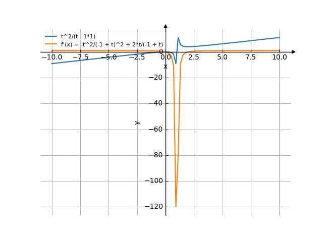 (-1 + t) ![Найти производную y' = f'(x) = t^2/(t-1) (t в квадрате делить на (t минус 1)) - функции. Найдём значение производной функции в точке. [Есть ответ!] Производная t^2/(t-1) /media/krcore-image-pods/hash/derivative/b/c0/edb4d8534f47c661e6d3c3378675b.png](/media/krcore-image-pods/hash/derivative/b/c0/edb4d8534f47c661e6d3c3378675b.png)