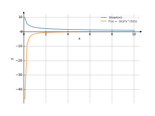 ![Найти производную y' = f'(x) = 3/(sqrt(x)) (3 делить на (квадратный корень из (х))) - функции. Найдём значение производной функции в точке. [Есть ответ!] Производная 3/(sqrt(x)) /media/krcore-image-pods/hash/derivative/7/ce/6423a37071ae75609b2373c0a8670.png](/media/krcore-image-pods/hash/derivative/7/ce/6423a37071ae75609b2373c0a8670.png)
