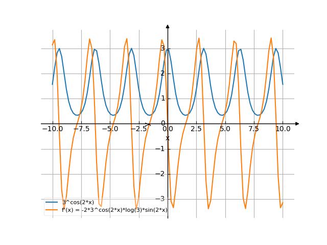 ![Найти производную y' = f'(x) = 3^cos(2*x) (3 в степени косинус от (2 умножить на х)) - функции. Найдём значение производной функции в точке. [Есть ответ!] Производная 3^cos(2*x) /media/krcore-image-pods/hash/derivative/4/da/1321eeb774e27337580a26c704057.png](/media/krcore-image-pods/hash/derivative/4/da/1321eeb774e27337580a26c704057.png)