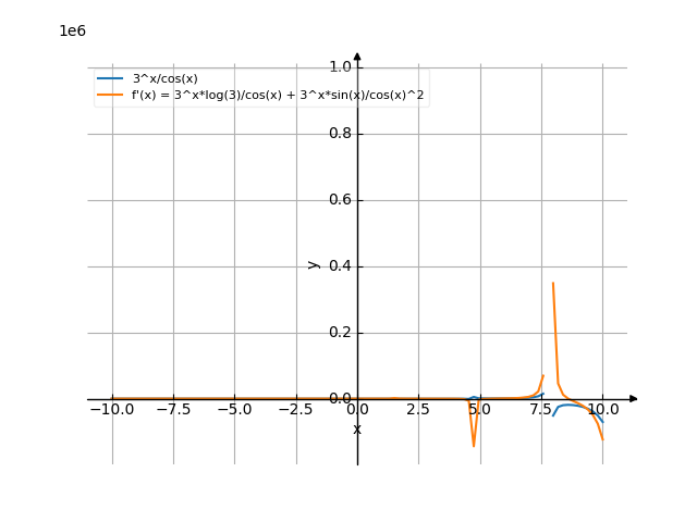 cos(x) ![Найти производную y' = f'(x) = 3^x/cos(x) (3 в степени х делить на косинус от (х)) - функции. Найдём значение производной функции в точке. [Есть ответ!] Производная 3^x/cos(x) /media/krcore-image-pods/hash/derivative/f/84/b4d3a90f96062ea0a40476101ea0f.png](/media/krcore-image-pods/hash/derivative/f/84/b4d3a90f96062ea0a40476101ea0f.png)
