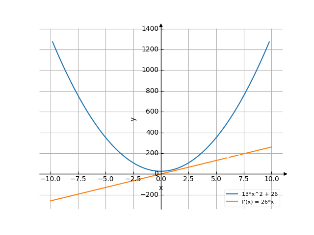 ![Найти производную y' = f'(x) = 13*x^2+26 (13 умножить на х в квадрате плюс 26) - функции. Найдём значение производной функции в точке. [Есть ответ!] Производная 13*x^2+26 /media/krcore-image-pods/hash/derivative/3/7e/f2cfc46538a180bae2532e47f3986.png](/media/krcore-image-pods/hash/derivative/3/7e/f2cfc46538a180bae2532e47f3986.png)