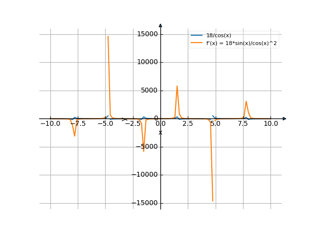 cos (x) ![Найти производную y' = f'(x) = 18/cos(x) (18 делить на косинус от (х)) - функции. Найдём значение производной функции в точке. [Есть ответ!] Производная 18/cos(x) /media/krcore-image-pods/hash/derivative/7/a4/2a485a759257a9f461f06301bafcb.png](/media/krcore-image-pods/hash/derivative/7/a4/2a485a759257a9f461f06301bafcb.png)