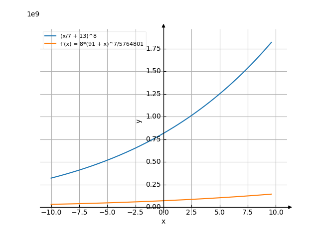 49 ![Найти производную y' = f'(x) = (x/7+13)^8 ((х делить на 7 плюс 13) в степени 8) - функции. Найдём значение производной функции в точке. [Есть ответ!] Производная (x/7+13)^8 /media/krcore-image-pods/hash/derivative/3/62/7b11a21ffad1ed2c26d1a77de17ba.png](/media/krcore-image-pods/hash/derivative/3/62/7b11a21ffad1ed2c26d1a77de17ba.png)