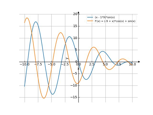 ![Найти производную y' = f'(x) = (x-9)*sin(x) ((х минус 9) умножить на синус от (х)) - функции. Найдём значение производной функции в точке. [Есть ответ!] Производная (x-9)*sin(x) /media/krcore-image-pods/hash/derivative/0/40/2b1b32d1d409b85281e996d649264.png](/media/krcore-image-pods/hash/derivative/0/40/2b1b32d1d409b85281e996d649264.png)