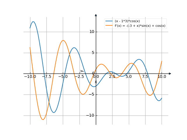 ![Найти производную y' = f'(x) = (x-3)*cos(x) ((х минус 3) умножить на косинус от (х)) - функции. Найдём значение производной функции в точке. [Есть ответ!] Производная (x-3)*cos(x) /media/krcore-image-pods/hash/derivative/c/00/9ef50bf5aceb4d9924f165c650af0.png](/media/krcore-image-pods/hash/derivative/c/00/9ef50bf5aceb4d9924f165c650af0.png)