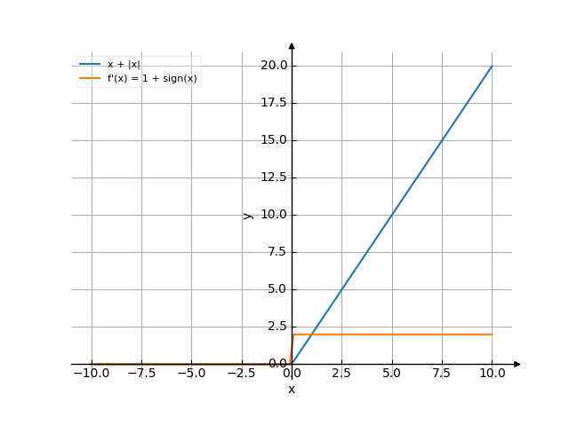 y' = (x+(|x|))'