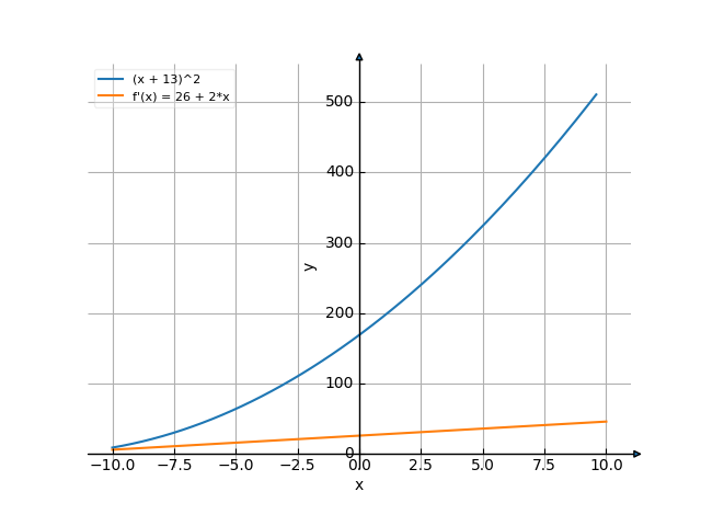 ![Найти производную y' = f'(x) = (x+13)^2 ((х плюс 13) в квадрате) - функции. Найдём значение производной функции в точке. [Есть ответ!] Производная (x+13)^2 /media/krcore-image-pods/hash/derivative/3/01/620a6ee354f07207d8c36b637277c.png](/media/krcore-image-pods/hash/derivative/3/01/620a6ee354f07207d8c36b637277c.png)