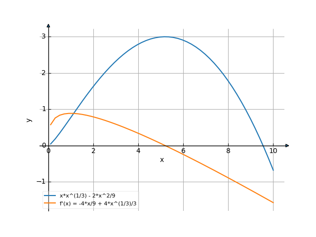 9 ![Найти производную y' = f'(x) = x*x^(1/3)-(2/9)*x^2 (х умножить на х в степени (1 делить на 3) минус (2 делить на 9) умножить на х в квадрате) - функции. Найдём значение производной функции в точке. [Есть ответ!] Производная x*x^(1/3)-(2/9)*x^2 /media/krcore-image-pods/hash/derivative/6/22/85f81009947570738572b7352014a.png](/media/krcore-image-pods/hash/derivative/6/22/85f81009947570738572b7352014a.png)